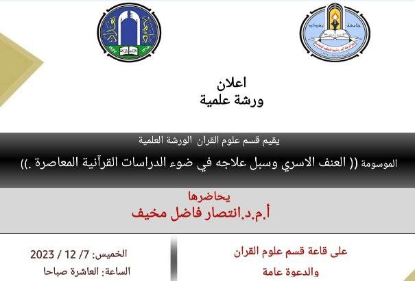 "العنف الاسري وسبل علاجه في ضوء الدراسات القرانية المعاصرة /العنف ضد الاطفال انموذحا "ورشة عمل