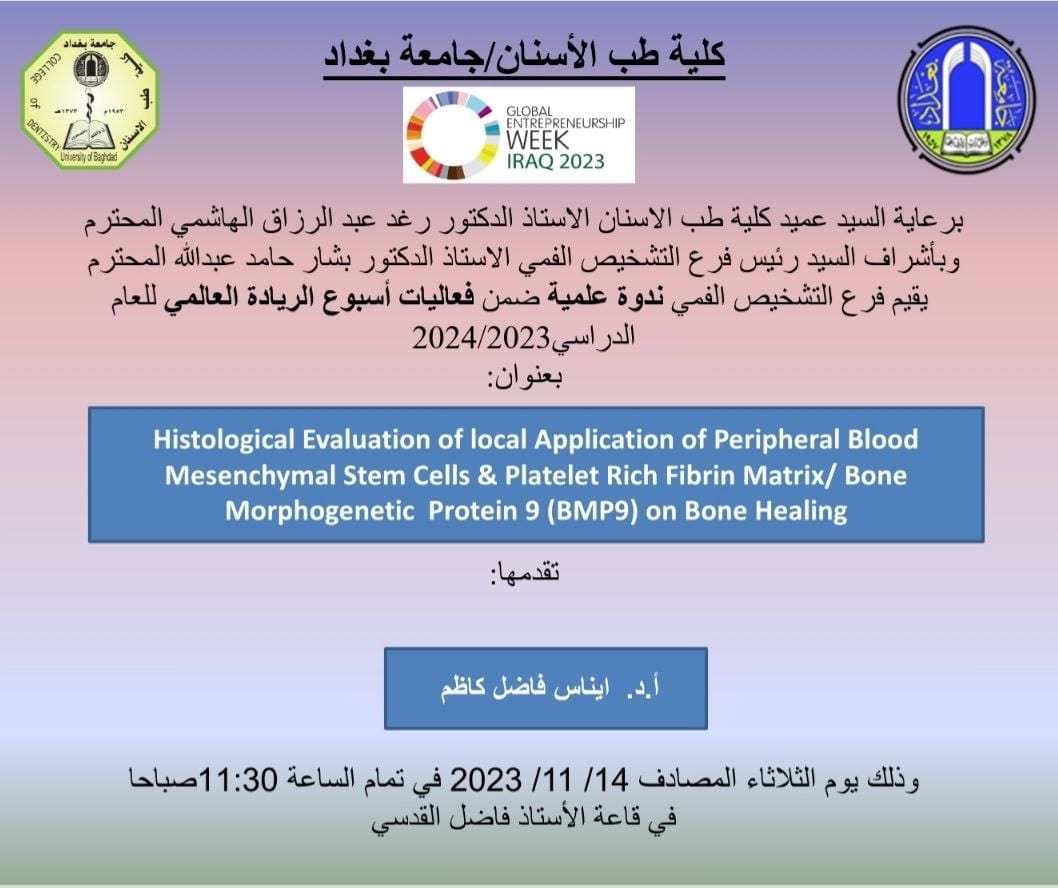 ندوه-histological evaluation of local application of peripheral blood mesenchymal stem cells and and platelet rich fibrin matrix\bone morphogenetic protein 9 on bone healing
