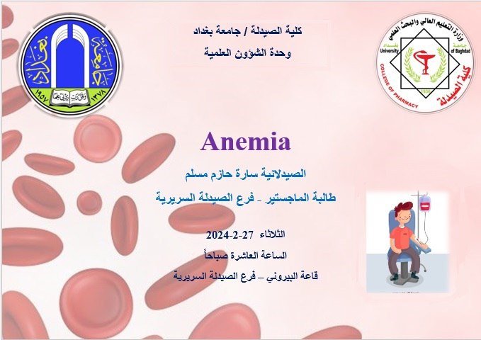 سارة حازم مسلم/ طالب الدراسات فرع الصيدلة السريرية