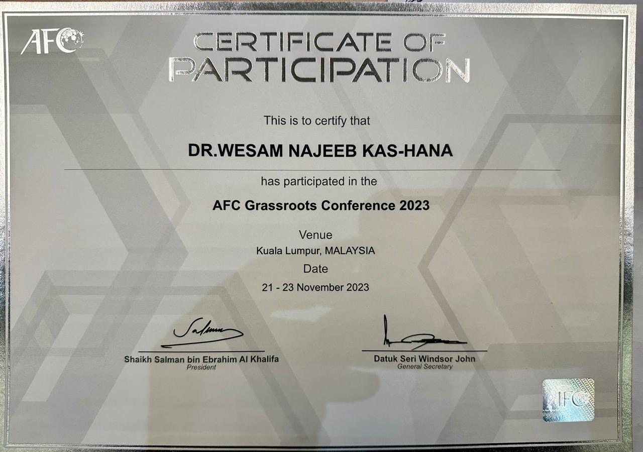شارك (أ.م.د وسام نجيب اصليوه) التدريسي في فرع الالعاب الفرقية في المؤتمر الآسيويّ الثالث للواعدين 2023 في العاصمةِ الماليزية كوالالمبور للفترة من (٢١-٢٠٢٣/١١/٢٣)بصفته المدير الفني / وكالة في الاتحاد العراقي بكرة القدم.