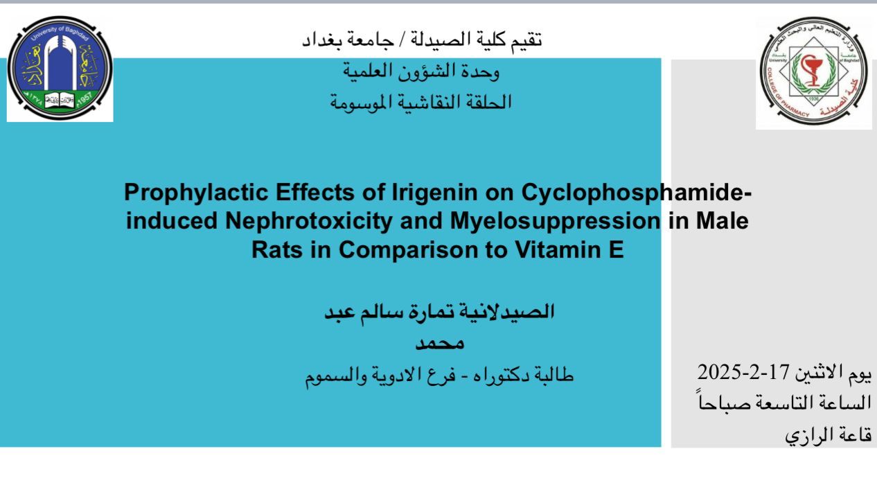 Prophylactic effects of irigenin on cyclophosphamide-induced nephrotoxicity and mylosupression in male rats in comparison to vitamin E