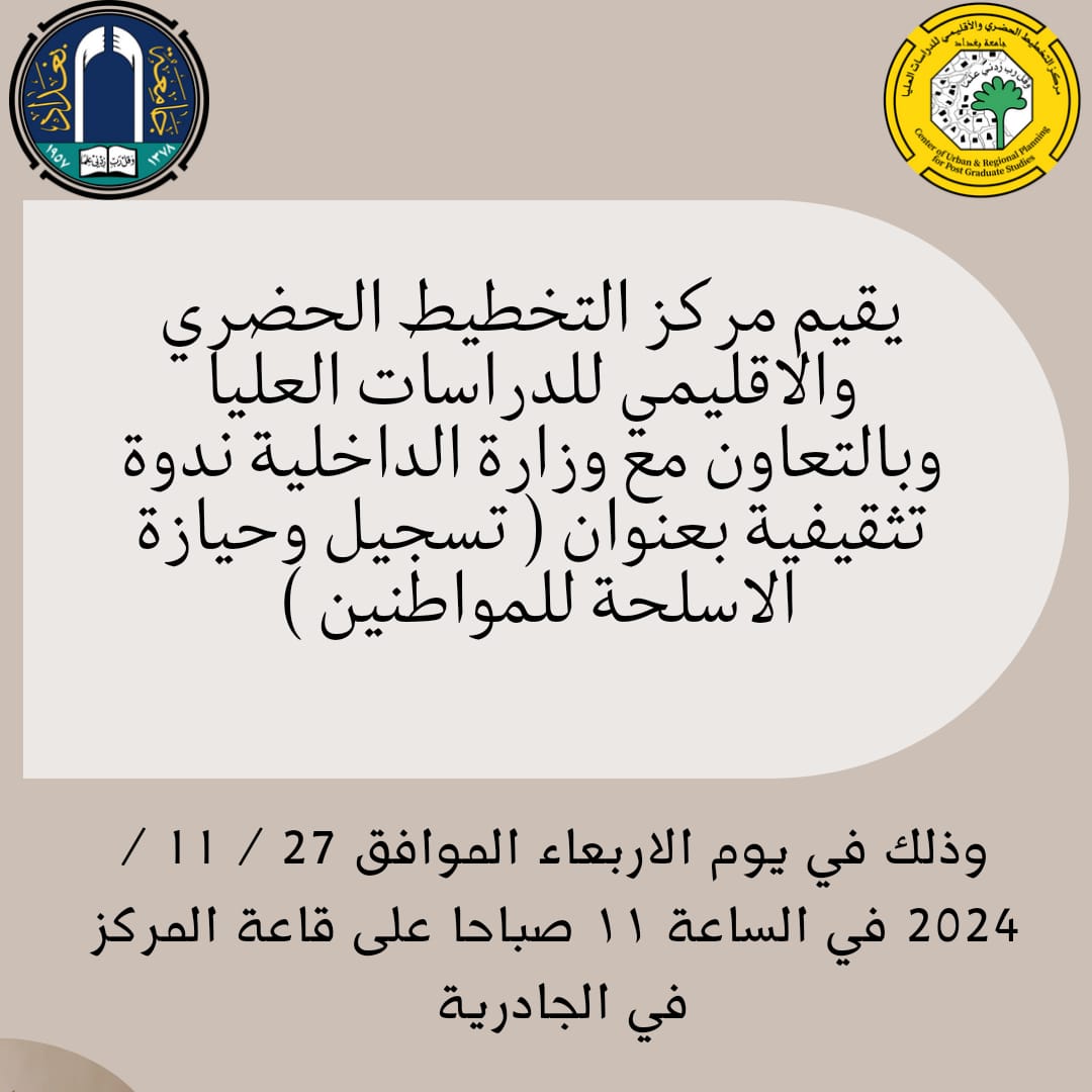 اقامها مركز التخطيط الحضري والاقليمي للدراسات العليا بالتعاون مع شعبة السيطرة وتنظيم السلاح في وكالة وزارة الداخلية