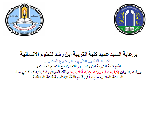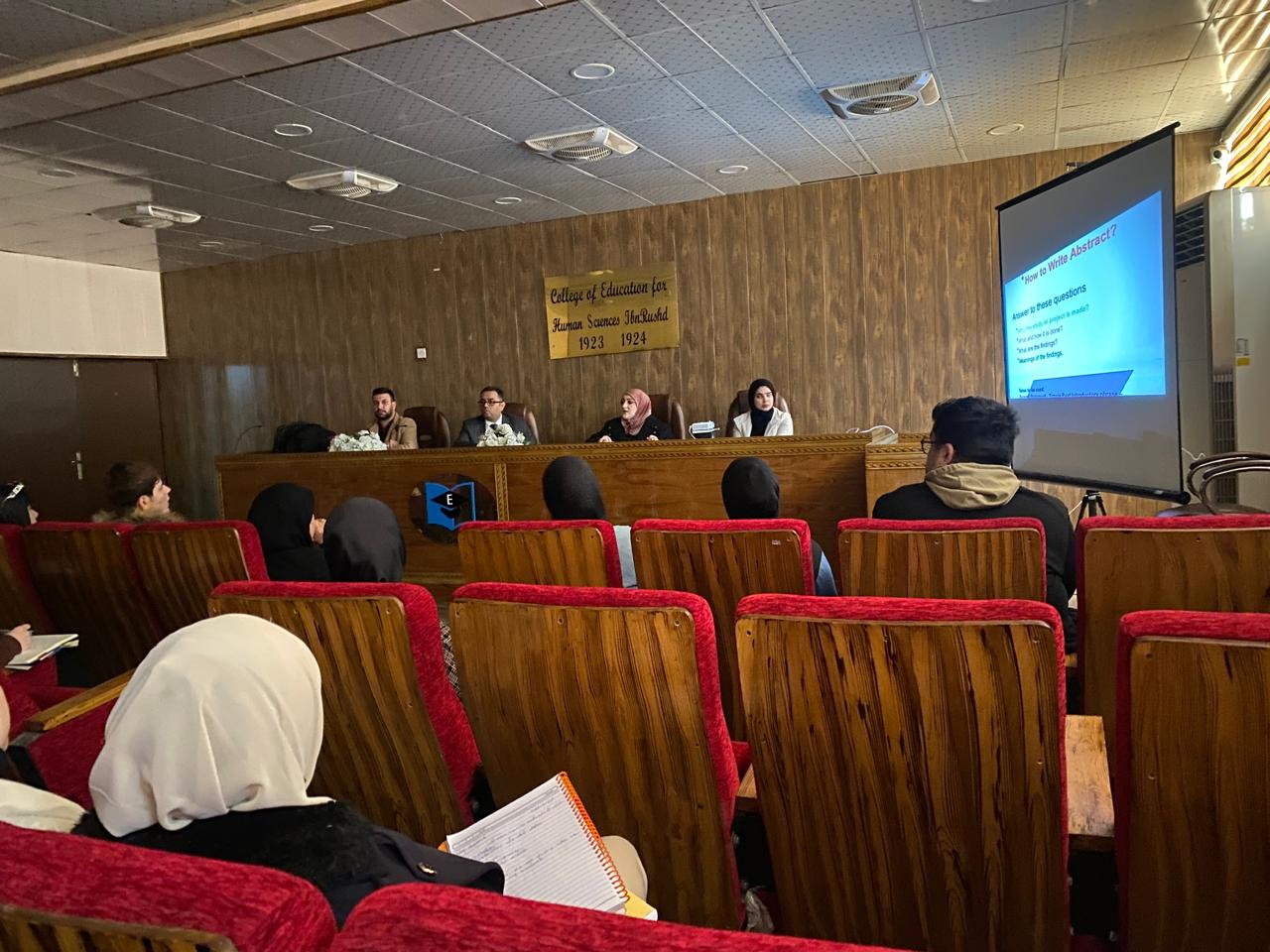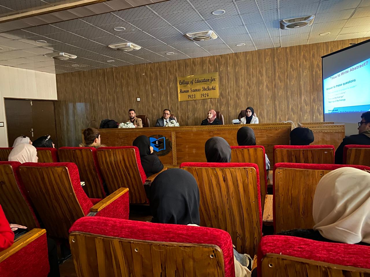 اقام قسم اللغة الانكليزية دورة بعنوان "كيفية كتابة ورقة بحثية" وحاضر فيها كل من م.م دعاء حسين حمودي، م.م زينب ابراهيم علوان، م.م سرمد سعد محمد. وكانت اهم اهداف هذه الدورة هي:
