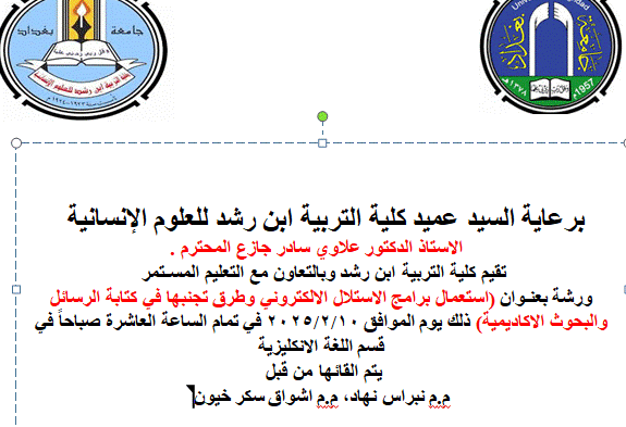استعمال برامج الاستلال الالكتروني وطرق تجنبها في كتابة الرسائل والبحوث الاكاديمية The Use of Plagiarism Detection Software and Ways to Avoid It in Writing Theses and Academic Researchورشة عمل