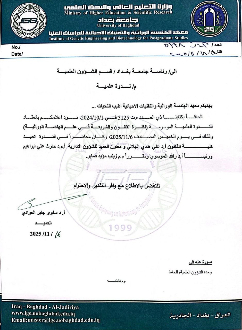 قاعة بغداد في المعهد (معهد الهندسة الوراثية والتقنيات الاحيائية للدراسات العليا)