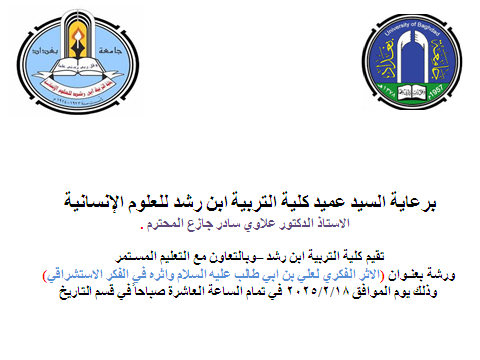 The intellectual work of Ali Ibn Abi Talib, peace be upon her الاثر الفكري لعلي بن ابي طالب عليه السلام واثره في الفكر الاستشراقيورشة عمل