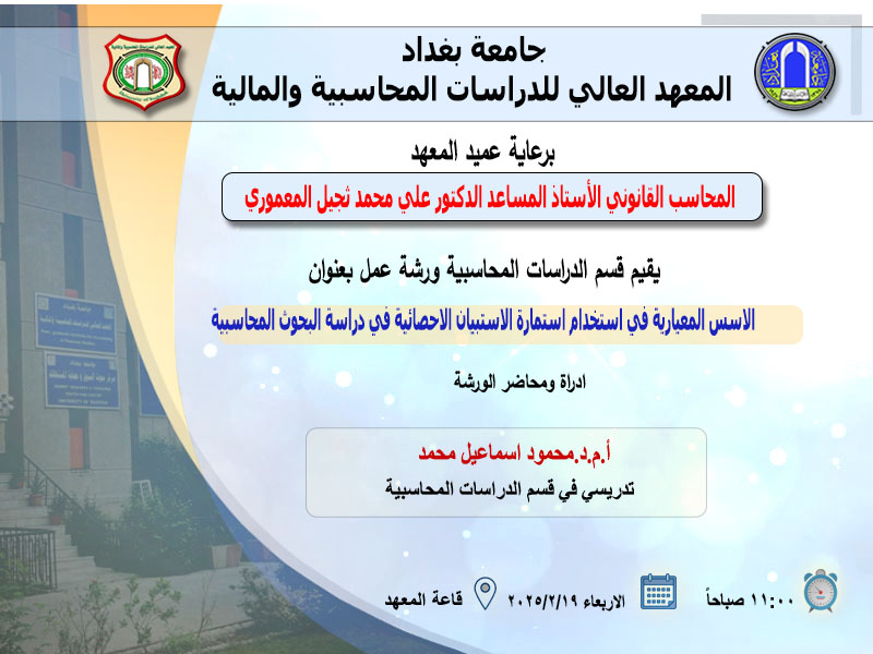 يقيم قسم الدراسات المحاسبية في المعهد ورشة عمل بعنوان