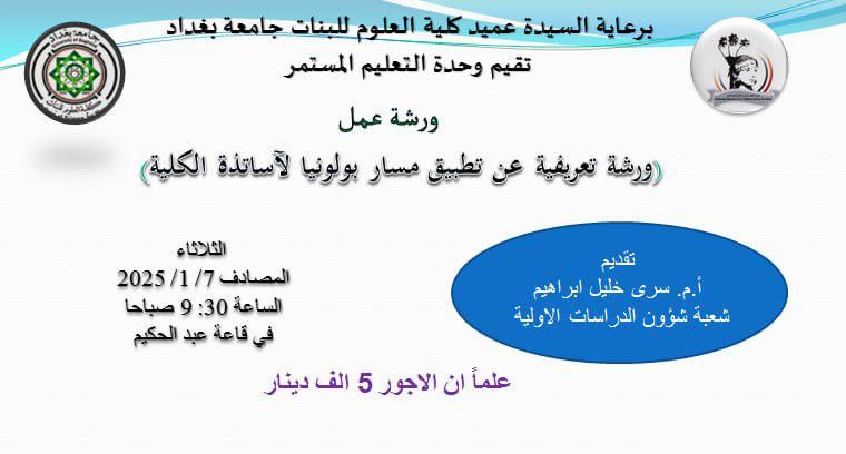 (Introductory workshop on the implementation of the Bologna Process for college professors)ورشة تعريفية عن تطبيق مسار بولونيا لاساتذة الكلية