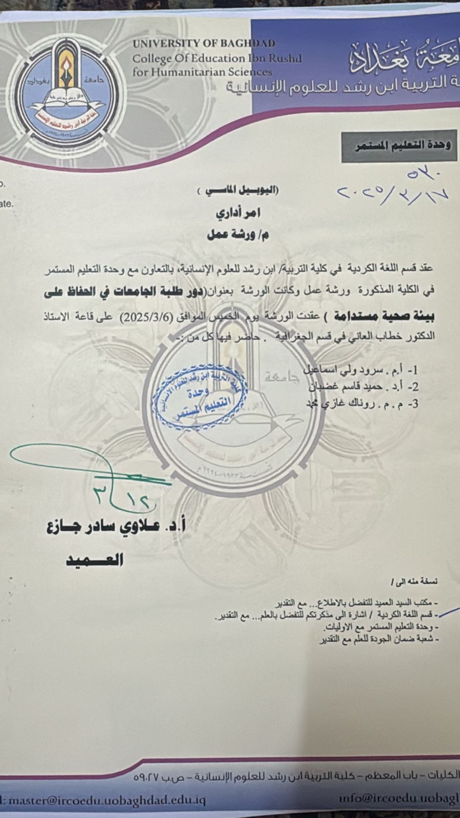 The role of university students in maintaining sustainable development دور طلبة الجامعات في الحفاظ على تنمية مستدامةورشة عمل