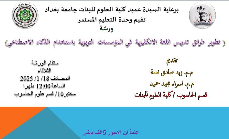 (Developing Methods for Teaching English in Educational Institutions Using Artificial Intelligence)تطوير طرائق تدريس اللغة الانكليزية في المؤسسات التربوية باستخدام الذكاء الاصطناعيورشة عمل