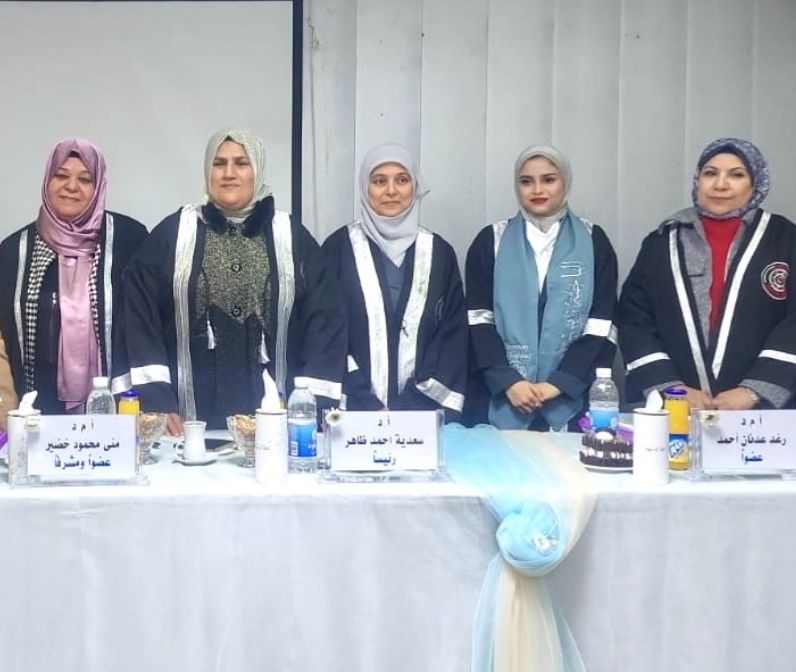 ناقشت كلية العلوم للبنات بجامعة بغداد رسالة الماجستير الموسومة (التقدير الطيفي لبعض الادوية باستخدام دقائق الفضة النانوية المحضرة.)للطالبة: زينب نوري فريد شلتاغ