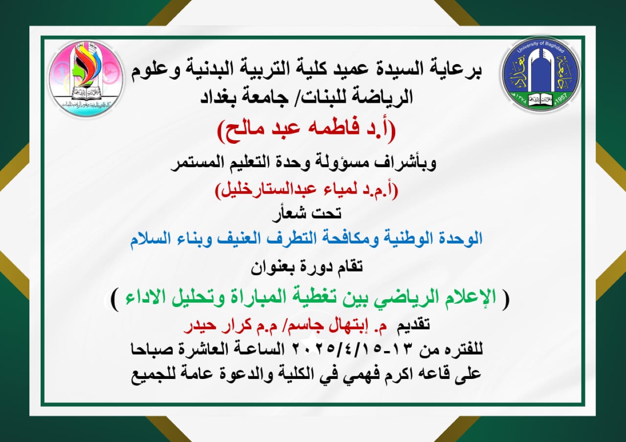 تم اقامة دورة تدريبة بعنوان (الاعلام الرياضي بين تغطية المباراة وتحليل الاداء) وعلى قاعة اكرم فهمي وبحضور