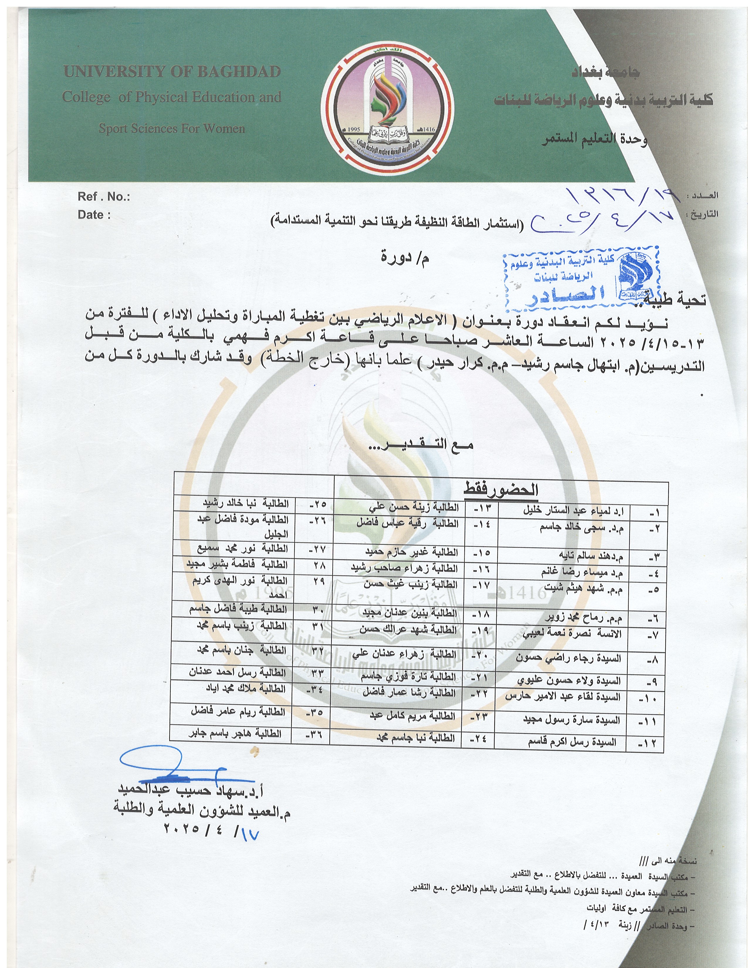 عدد من تدريسيات والطالبات وبواقع 36 حاضرا