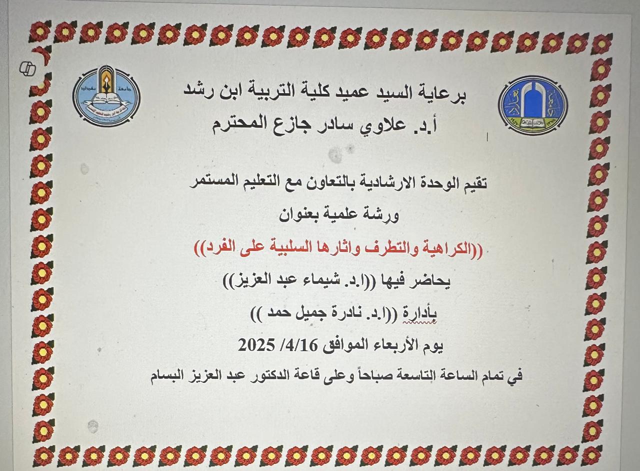 Hate and prejudice and negative effects on the individual الكراهية والتطرف واثارها السلبية على الفردورشة عمل