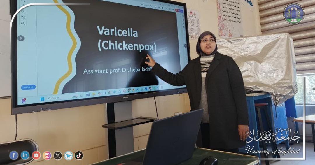 نظمت كلية طب الأسنان في جامعة بغداد ندوة علمية بعنوان (انتشار جدري الماء لدى الأطفال ومضاعفاته) ،ألقتها الدكتورة هبة فاضل حسن.