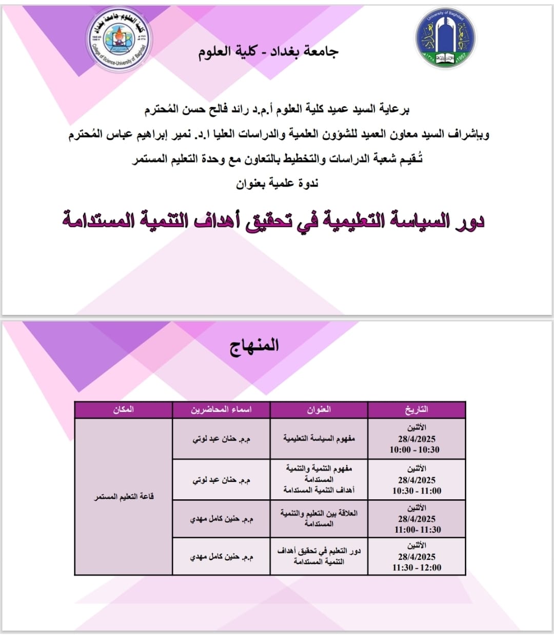 الهدف من استخدام السياسة التعليمية في تحقيق أهداف التنمية المستدامة هو: توفير التعليم الجيد للجميع 1.توفير فرص تعليمية متساوية توفير فرص تعليمية متساوية للجميع، بغض النظر عن الجنس أو العرق أو الدين أو الحالة الاقتصادية. 2. تحسين جودة التعليم تحسين جودة التعليم، من خلال توفير برامج تعليمية متقدمة، وتدريب المعلمين، وتوفير الموارد التعليمية اللازمة. تعزيز المهارات والقدرات اللازمة للعمل والابتكار تعزيز القيم والمواطنة المسؤولة.