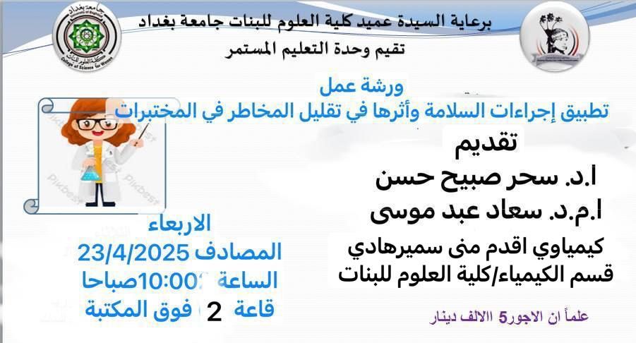 (Implementing safety procedures and their impact on reducing risks in laboratories) تطبيق اجراءات السلامة واثرها في تقليل المخاطر في المختبراتورشة عمل