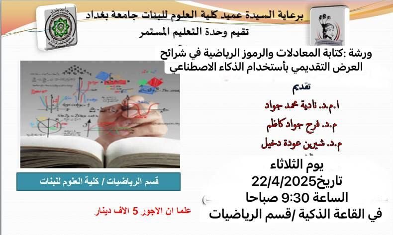 (Writing equations and mathematical symbols in presentation slides using artificial intelligence) كتابة المعادلات والرموز الرياضية في شرائح العرض التقديمي بأستخدام الذكاء الاصطناعيورشة عمل
