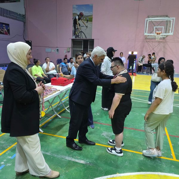 تم اقامة الورشة في قاعة الملعب الداخلي بحضور مؤسسة مميزون لذوي الاحتياجات الخاصة وايتام مدرسة المحاسن وجمعية الفرح لرعاية الايتام و فريق العراقية هنا