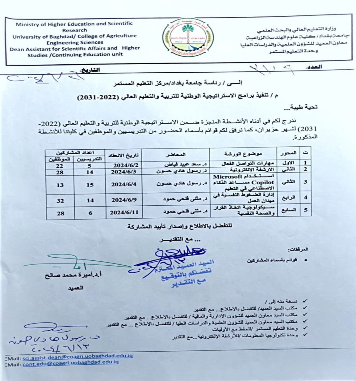 وزارة الزراعة - دائرة الإرشاد والتدريب الزراعي - مركز التدريب والتأهيل