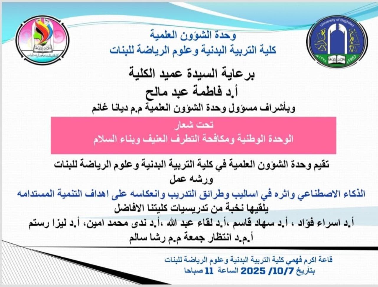 الذكاء الاصطناعي واثره في اساليب وطرائق التدريب وانعكاسة على اهداف التنمية المستدامةورشة عمل