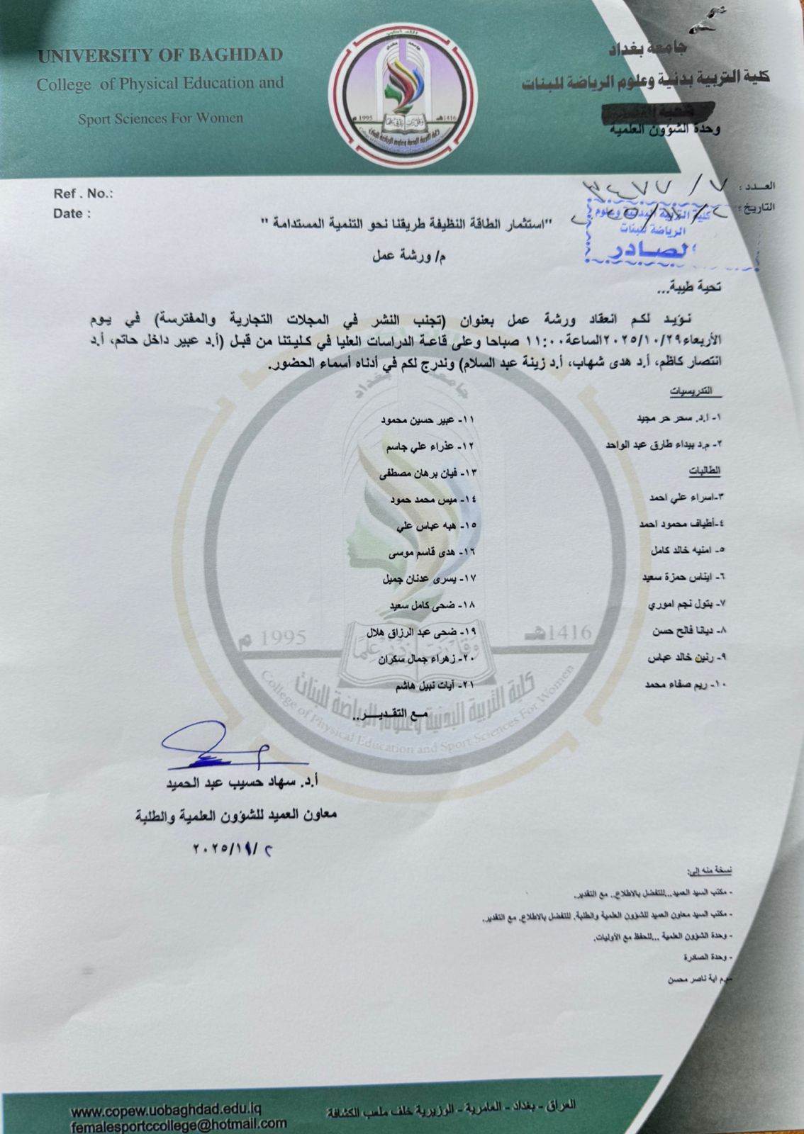 أ,د اننصار كاظم, أ,د هدى شهاب, أ.د زينة عبد السلام, أ.د عبير داخل حاتم