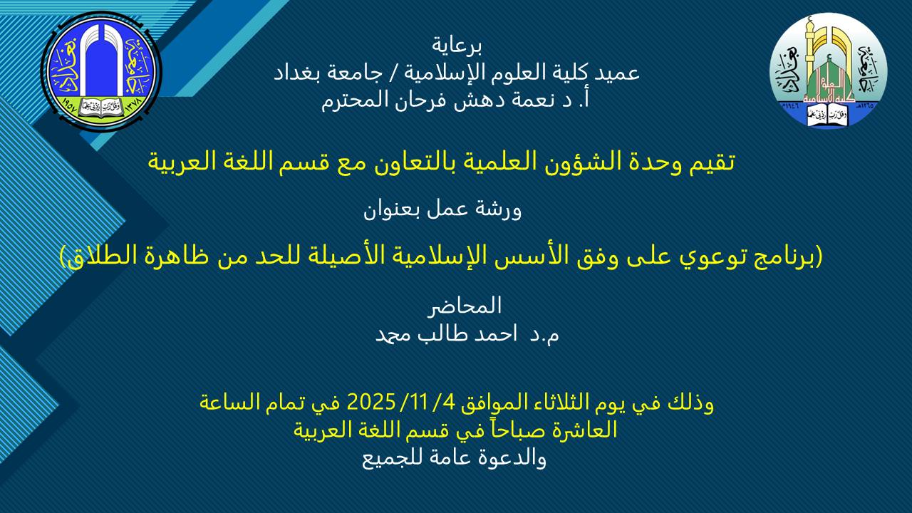 برنامج توعوي على وفق الأسس الإسلامية الأصيلة للحد من ظاهرة الطلاق "An awareness program based on authentic Islamic principles to reduce the phenomenon of divorce."ورشة عمل
