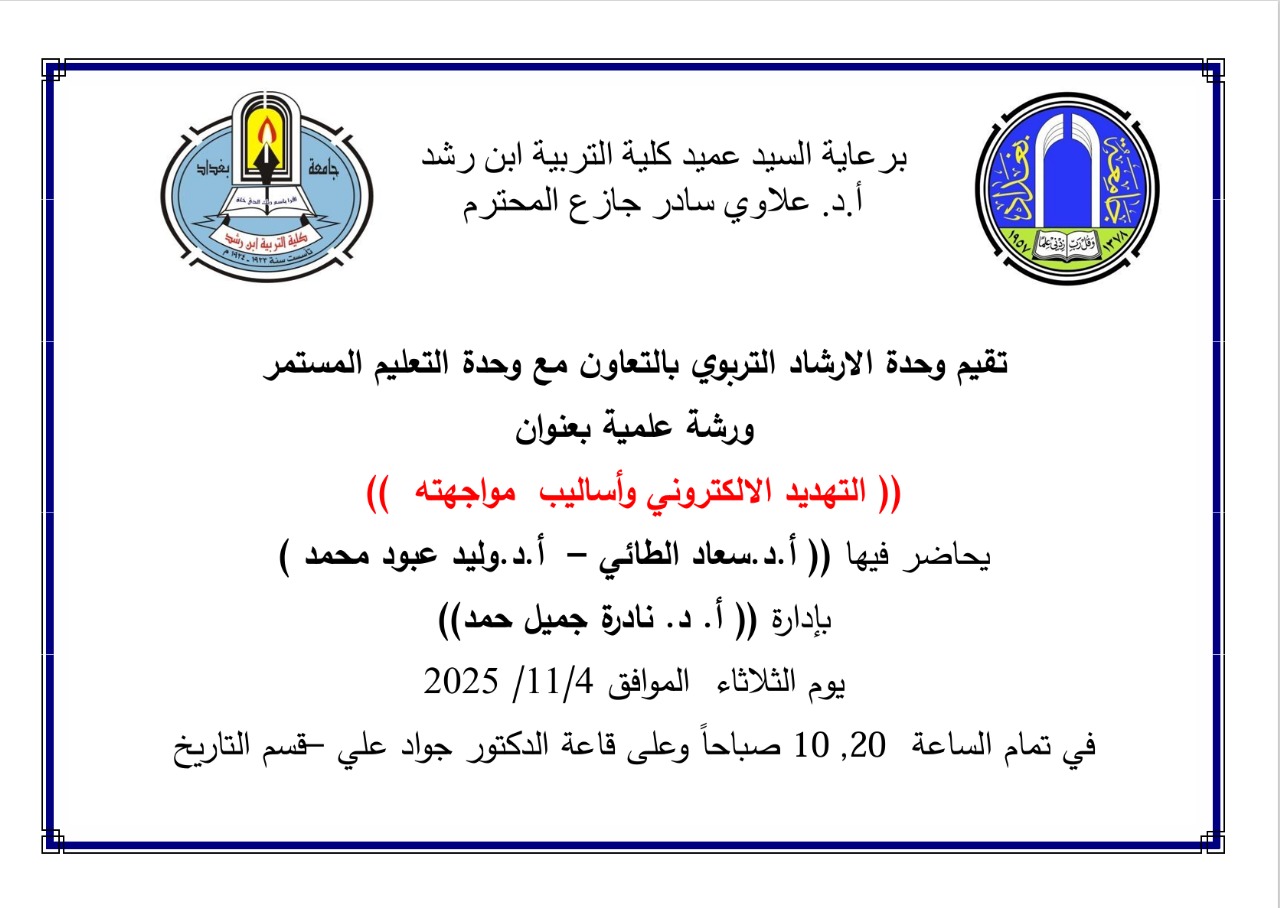 الهدف من الورشة: توعية الطلبة على ضرورة الاهتمام بحفظ خصوصياتهم وعدم الافصاح عنها امام الاخرين او عبر وسائل التواصل الاجتماعية
