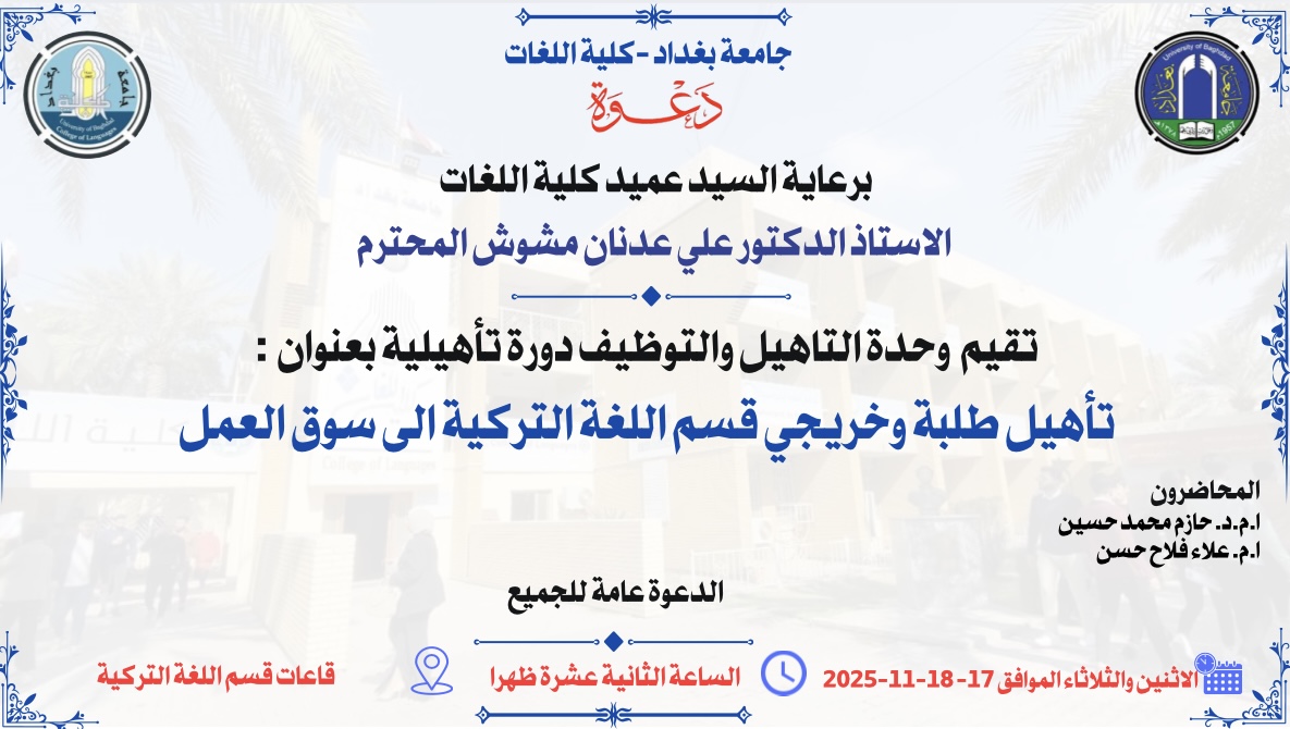 تأهيل طلبة وخريجي قسم اللغة التركية الى سوق العملدورة