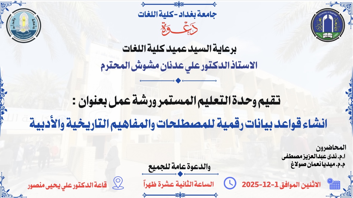 تتناول الورشة فكرة إنشاء قاعدة بيانات رقمية للمصطلحات والمفاهيم التاريخية و الأدبية سواء لأغراض البحث الأكاديمي أو التعليم. وذلك من خلال تجميع المصطلحات الأدبية ومصادرها وتعريفاتها بطريقة رقمية منظمة، بحيث يمكن البحث بسهولة عن أي مصطلح وتحديث المحتوى باستمرار و ربط المفاهيم ببعضها مع توضيح كيفية إنشاء قواعد بيانات.