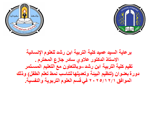 أبن رشد تقييم دورة تدريبية حول تنظيم البيئة وتعديلها لتناسب نمط تعلم الطفل التوحد أقامت الوحدة التربوية لدراسات السلام وحقوق الإنسان في كلية التربية ابن رشد للعلوم الإنسانية بجامعة بغداد دورة تدريبية بعنوان (تنظيم البيئة وتعديلها لتناسب نمط تعلم الطفل التوحد" تيتش"), حاضر فيها أ.د غادة علي هادي ال هاشم وم.د عمر سعدي سليم الموسوي, وحضرها عدد من الطلبة وذلك لأن البرنامج يتطلب تدريب الطلبة لإكسابه خبرات في هذا المجال. هدفت الدورة في اليوم الاول إلى تعليم المهارات السلوكية والمعارف العلمية اللازمة للتعامل مع سلوكيات أطفال التوحّد وفق اسلوب (TEACCH)، بما يسهم في تطوير قدراتهم على تصميم وتنفيذ البرامج العلاجية السلوكية بطريقة علمية فعّالة, وقسمت الورشة الى عدة محاور تضمن الاول منها التعريف بمرض اضطراب التوحد, فيما تضمن اليوم الثاني التعرف على اسباب التوحد والذي قد يكون عوامل بيئية أو تأثيرات قبل الولادة أو خلالها, وجاء اليوم الثالث حول التعرف على نظام تيتش بوصفة أكثر الاساليب فعالية في تعليم الأطفال ذوي اضطراب طيف التوحد ويعتمد على التنظيم البنيوي للبيئة وتقديم معلومات بصرية وا ضحة تساعد الطفل على الفهم والتنبؤ وتقليل القلق وزيادة الاستقلالية, ودار المحور الرابع حول فلسفة أسلوب تيتش, فيما تضمن المحور الاخير تطبيقات عملية في الصف أو المنزل. وفي ختام الدورة أكد الطلبة الحضور على أهمية مثل هذه الدورات في تعزيز الوعي التربوي والإنساني في التعامل مع فئة أطفال التوحّد، ودورها في دعم أهداف الوحدة التربوية في نشر ثقافة السلام وحقوق الإنسان عبر التربية الشاملة.