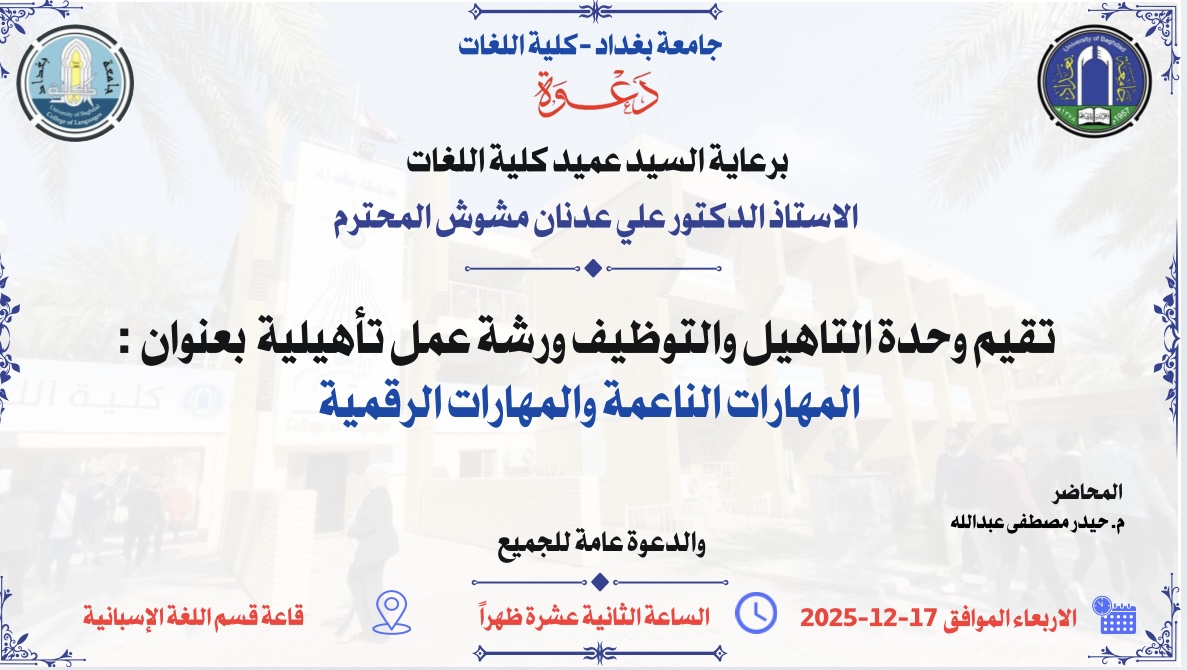 تشمل الورشة تطوير المهارات الناعمة مثل التواصل الفعال ، والعمل ضمن الفريق ، إدارة الوقت ، استعمال لغة الجسد وبناء الثقة بالنفس