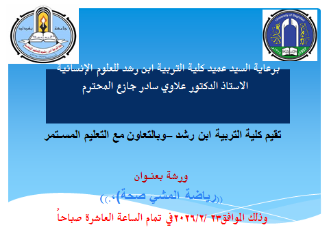 رياضة المشي صحة Walking is healthورشة عملKeywords: العلوم الانسانية والاجتماعية