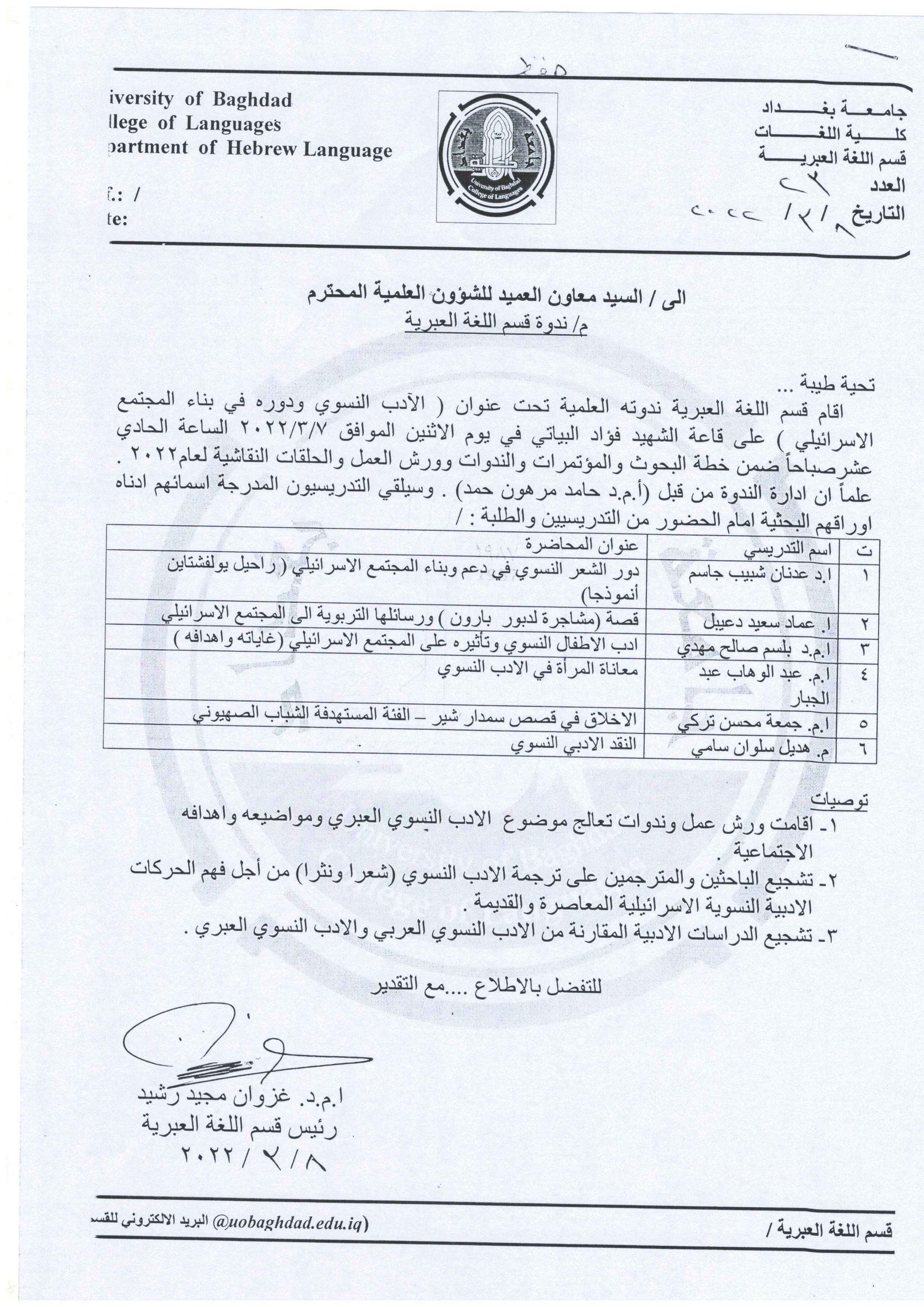 تتناول هذه الندوة دور الادبيات الاسرائيلية في ترسيخ القيم الاجتماعية التي تساهم في بناء المجتمع .