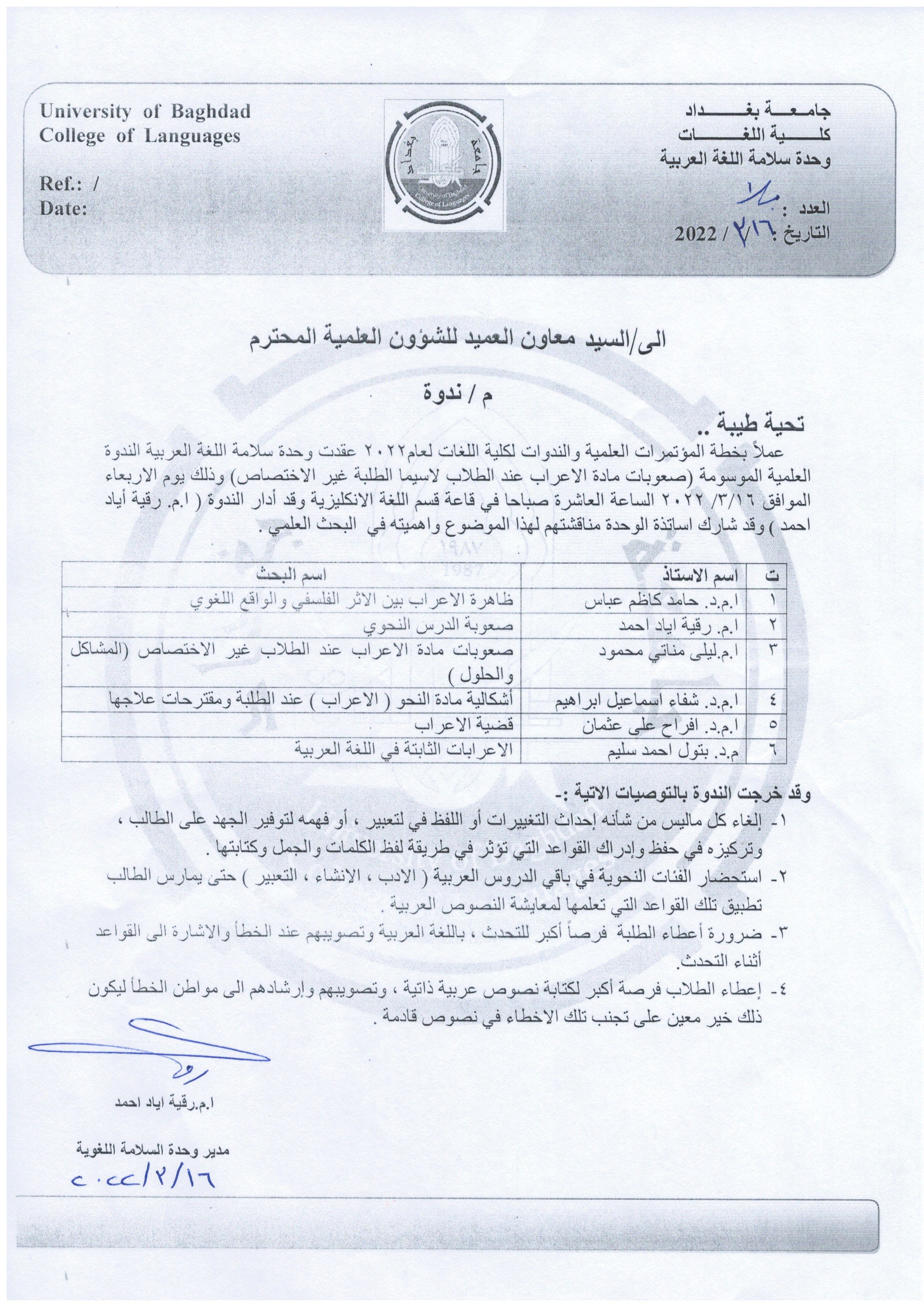 صعوبات مادة الاعراب عند الطلاب لاسيما الطلبة غير الاختصاصندوة
