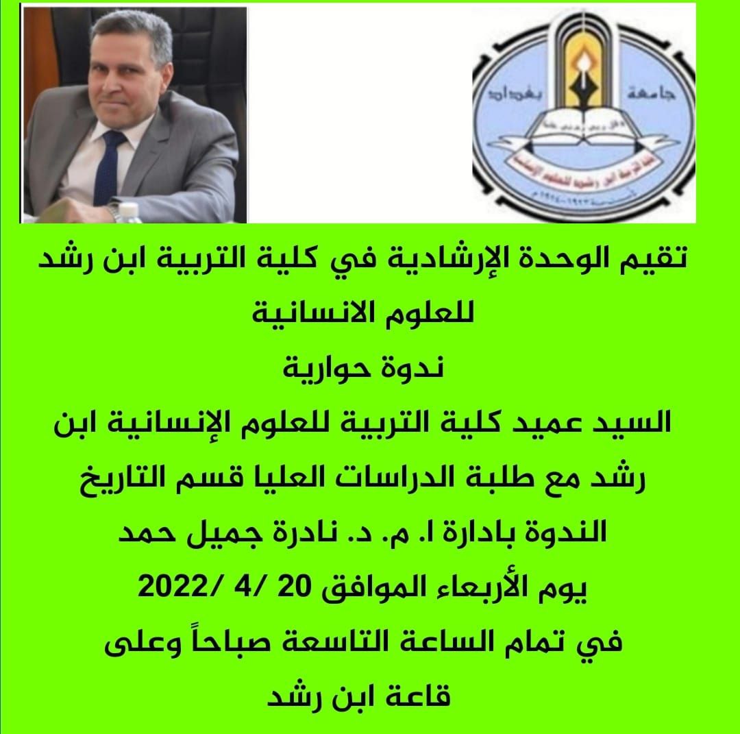ندوة حوارية السيد العميد المحترم مع طلبة الدراسات العليا قسم التاريخندوة