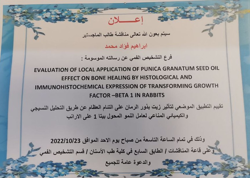 كلية طب الاسنان - فرع التشخيص الفمي - الطابق السابع - قاعة المناقشات
